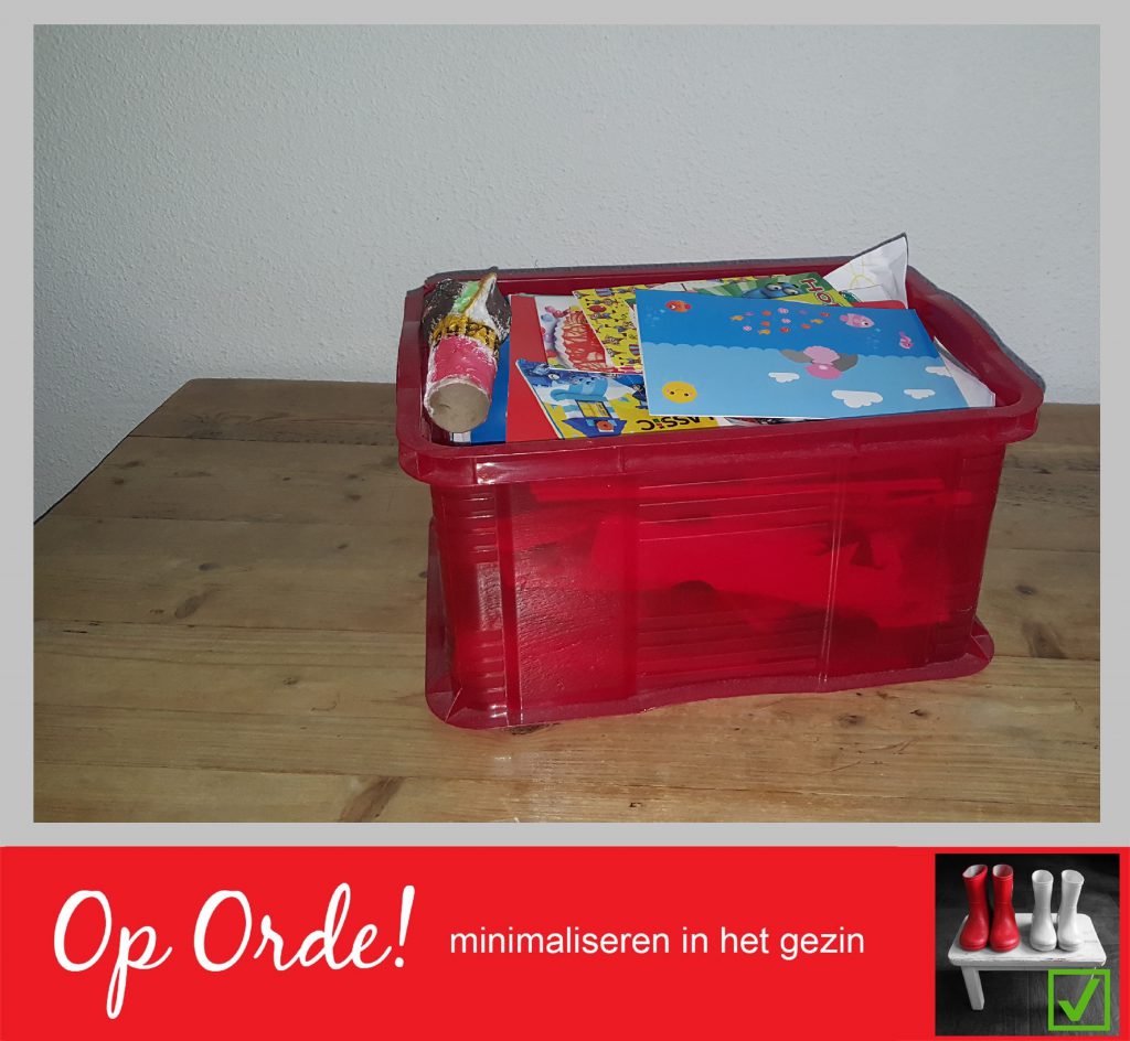 Het lijkt wat omslachtig, maar het is in de praktijk reuze eenvoudig. Ieder kind heeft één box. Dus daar moet alles van de pak en beet achttien jaar in 🙂